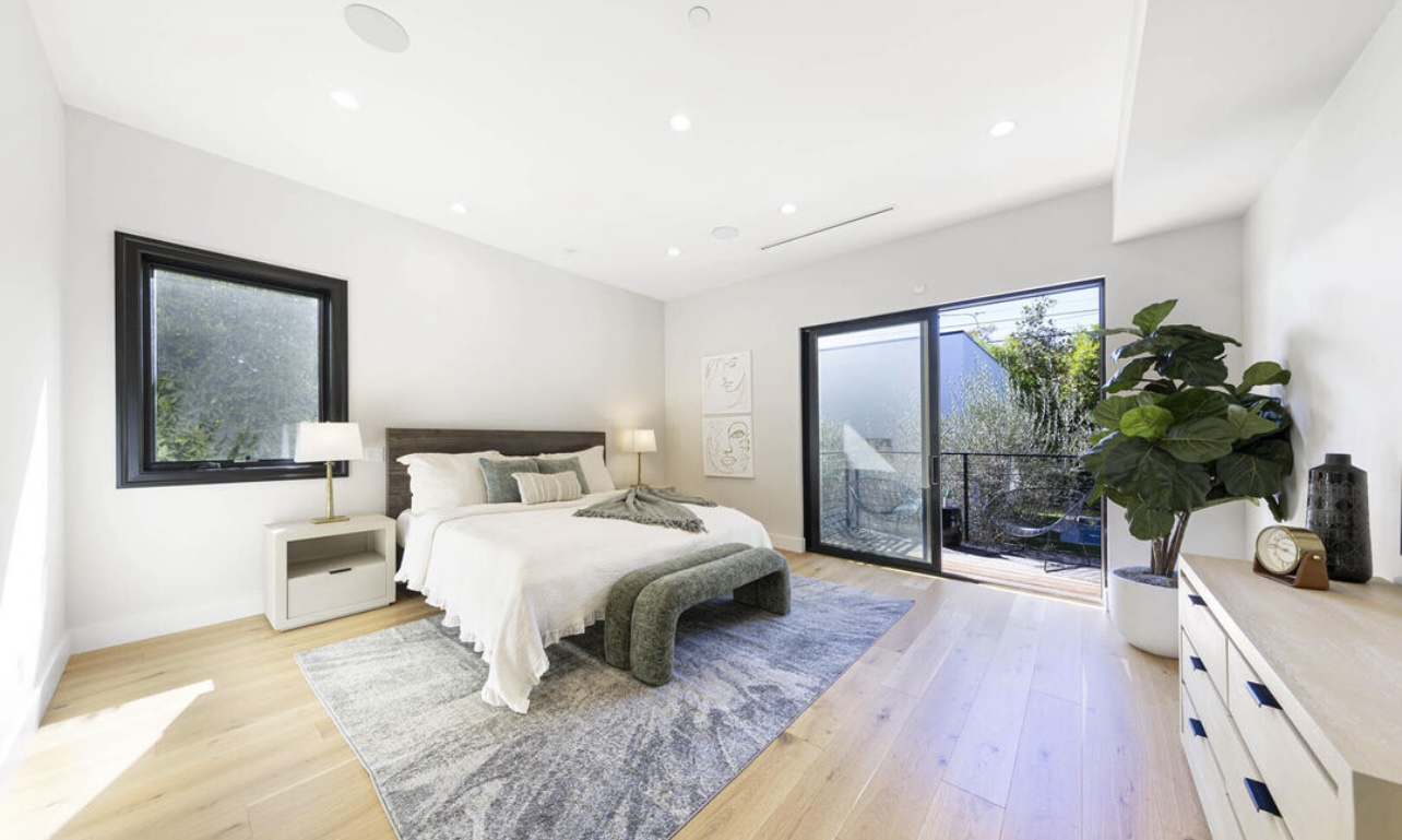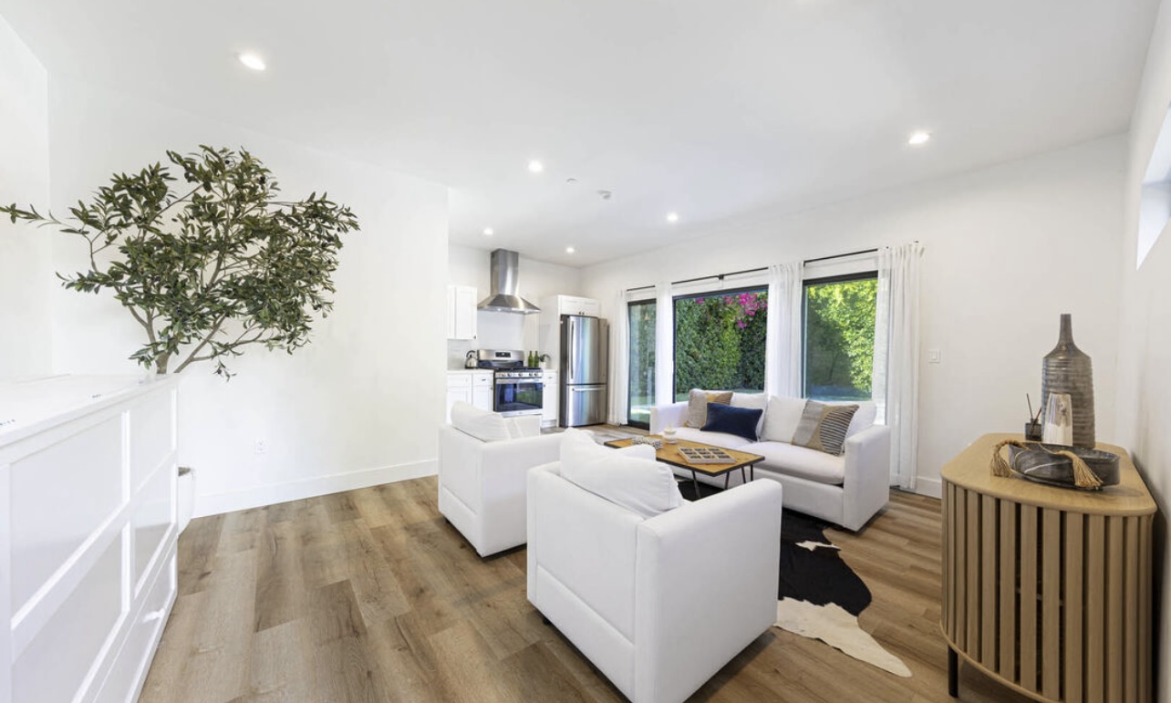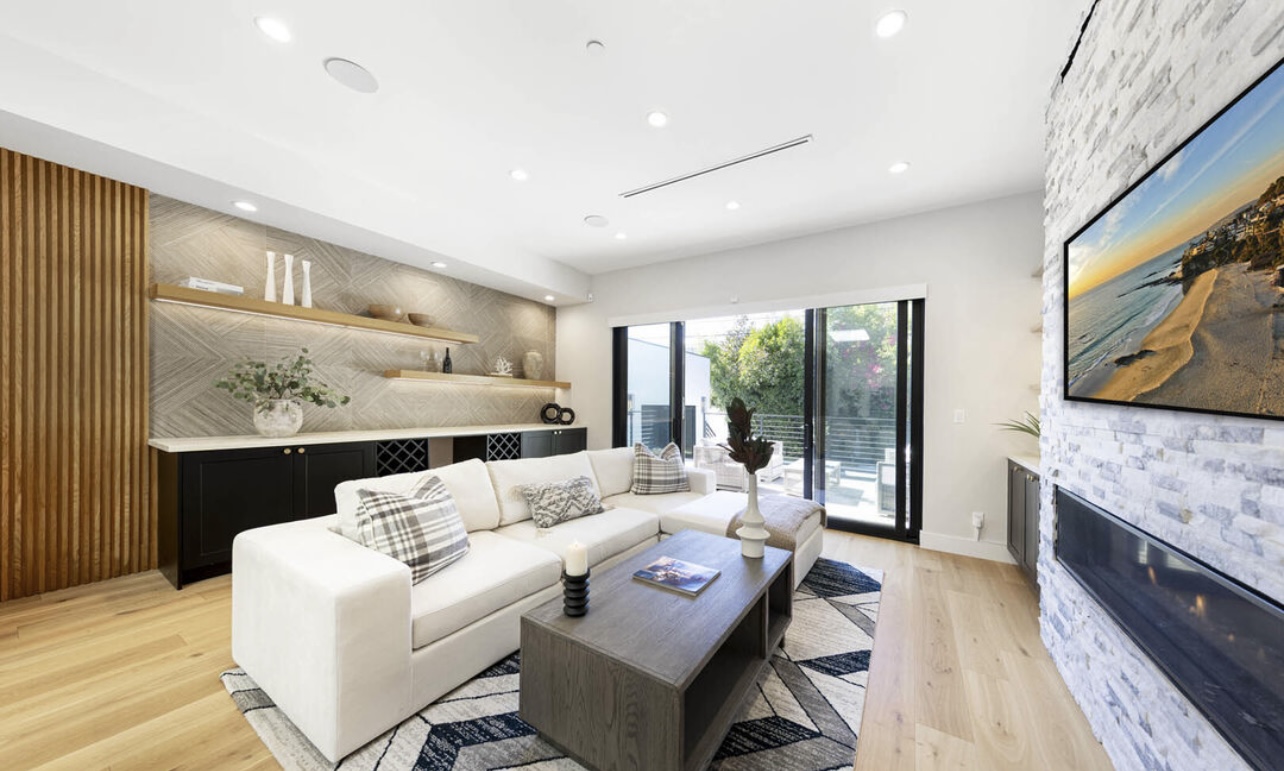Experience exceptional value in this newer-construction modern farmhouse with a fully permitted ADU, each with its own address and entrance. Located on one of Beverly Grove’s most walkable and picturesque streets, this single-story smart home offers rare privacy and effortless sophistication. Behind tall hedges and secure gates, natural light fills the open living room anchored by a dramatic floor-to-ceiling fireplace. Wide-plank white oak flooring, soaring ceilings, and designer finishes elevate every space.