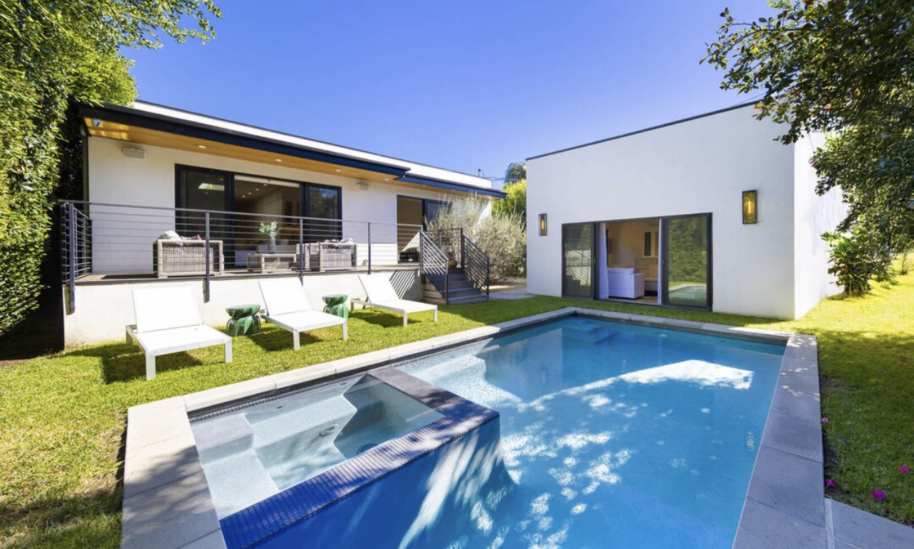 Additional highlights include two bedrooms with a shared full bath, a striking powder room, California basement for extra storage, and a detached ADU with kitchenette and bath-ideal for guests, office, gym, or studio. Just moments from The Grove, Beverly Hills, and LA’s best dining and shopping.